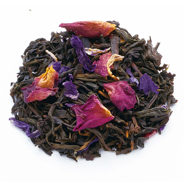 爽やかなベルガモットで香りづけした紅茶に、慶應BRBカラーをイメージした花びらを散りばめました。