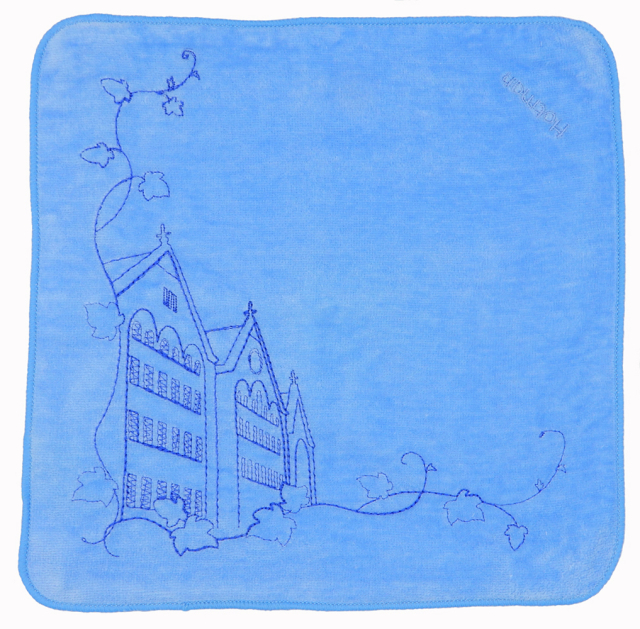 ベロアハンカチ ライブラリーがリニューアルしました。老舗タオルメーカー ホットマンとのコラボ商品で、品質にこだわった逸品です。しなやかで美しい光沢と発色を実現した、綿100%のタオルハンカチです。なめらかなビロード調の触り心地はそのままに、三田キャンパスのシンボルである図書館旧館(重要文化財)を鮮明に刺繡で表現しました。築100年を超える図書館旧館の刺繍入りハンカチは、贈り物としても最適です。