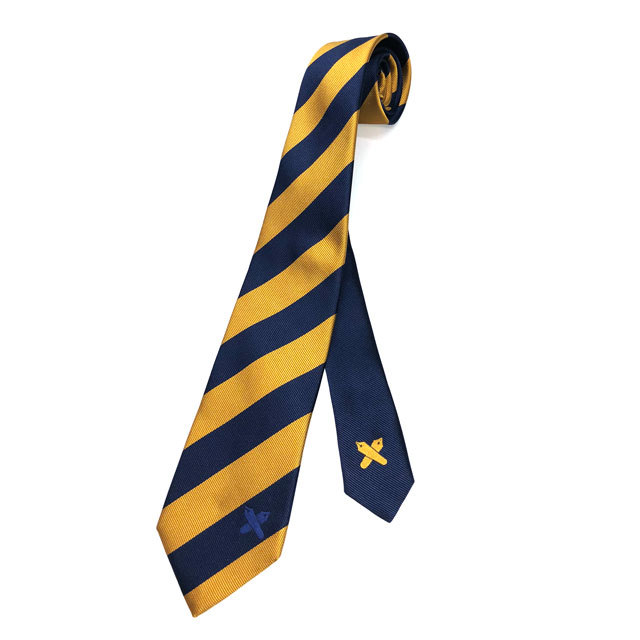 大剣と小剣のデザインを変えたクレリックネクタイ。小剣には黄色でペンマークをあしらいました。