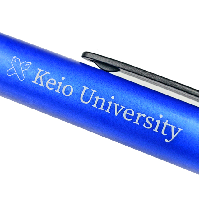 ボディに、ペンマークとKeio Universityの文字をシルバーでプリントし、慶應義塾のブランドカラーのブルーとレッドの2色をご用意しました。