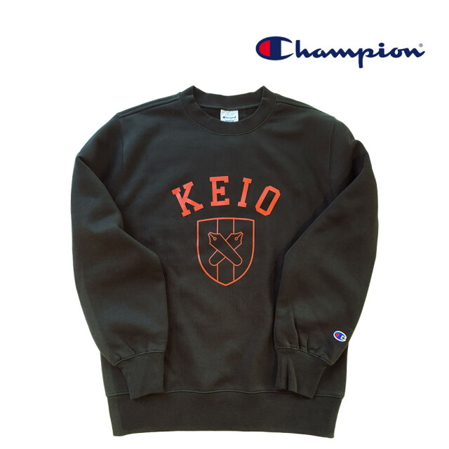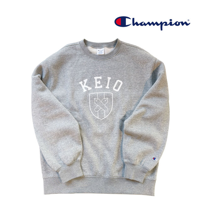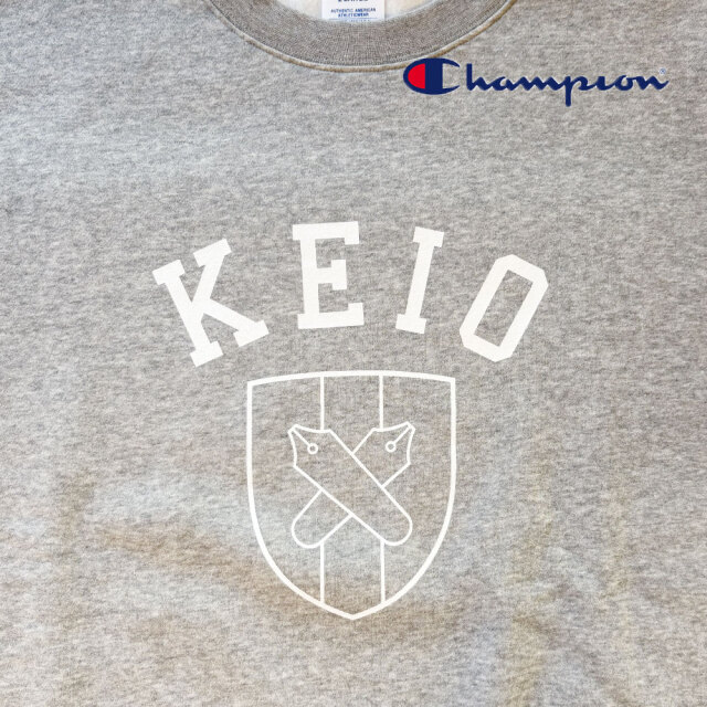 Championのボディに慶應義塾のエンブレムをプリントしたクルーネックスウェットシャツです。