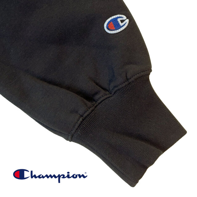 本商品では綿とポリエステルの混紡素材で保温性に優れた裏起毛仕様のチャンピオンBODYを使用しています。